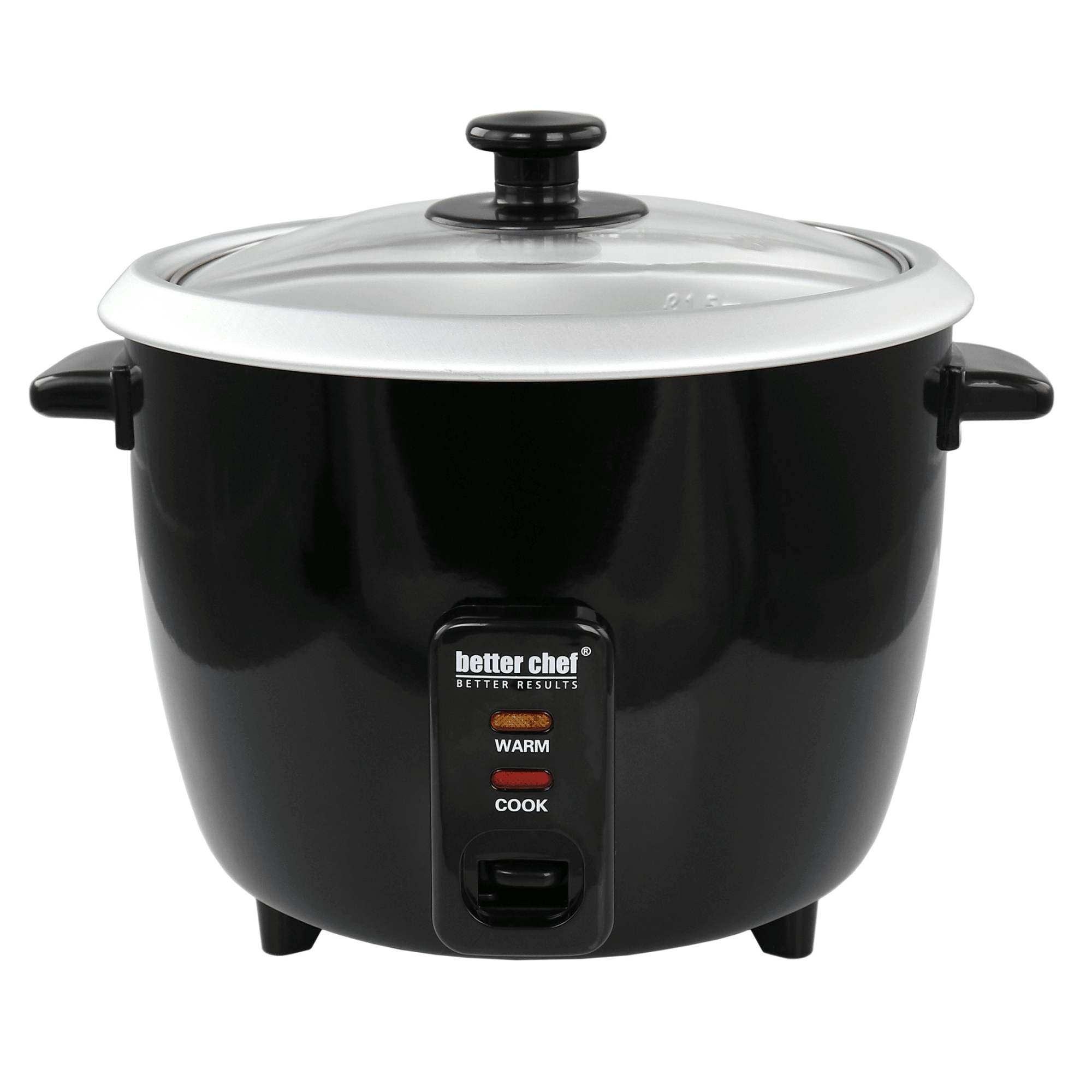 This Better Chef 8-to-16-cup rice cooker simplifies cooking with its easy-to-use operation: just add rice and water, and let the appliance take care of the rest, ensuring hassle-free meal preparation. It maintains rice warmth for extended periods, ensuring that your rice remains ready to serve whenever needed. Cleaning is made convenient with the removable bowl, allowing for effortless cleanup after each use. Additionally, it comes with a rice paddle and measuring cup, providing all the necessary tools for precise cooking measurements. Safety features include cool-touch handles and exterior, ensuring protection from heat during operation. This versatile appliance can cook various types of rice, including long grain and wild rice, catering to diverse culinary preferences. With a capacity of 8 cups (16 cups cooked), it is suitable for serving small to medium-sized gatherings.